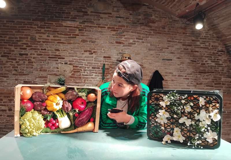 Sur scène, un “jardin en mouvement” prend vie : au centre, un établi surélevé, à la fois table de jardinier, d’usine et d’artiste, sert de terrain de jeu miniature. Le décor oscille entre petites maquettes et envahissement grandeur nature par le végétal. Glycines, lianes et plantes prolifèrent à mesure que Tistou agit. Rien n’est illustré littéralement : le végétal pousse pendant que la fiction avance, dans un jeu de coïncidences sensibles. Quatres acteur·rices assurent narration et personnages : les adultes, souvent figés dans leurs idées reçues, et Tistou, incarné avec poésie, qui façonne le monde par sa seule présence. La scénographie évoque le passage de la stérilité à la vie, de l’ordre figé à l’utopie vivante. C’est le rêve d’un enfant qui, en touchant les graines, transforme le réel, comme une promesse politique,